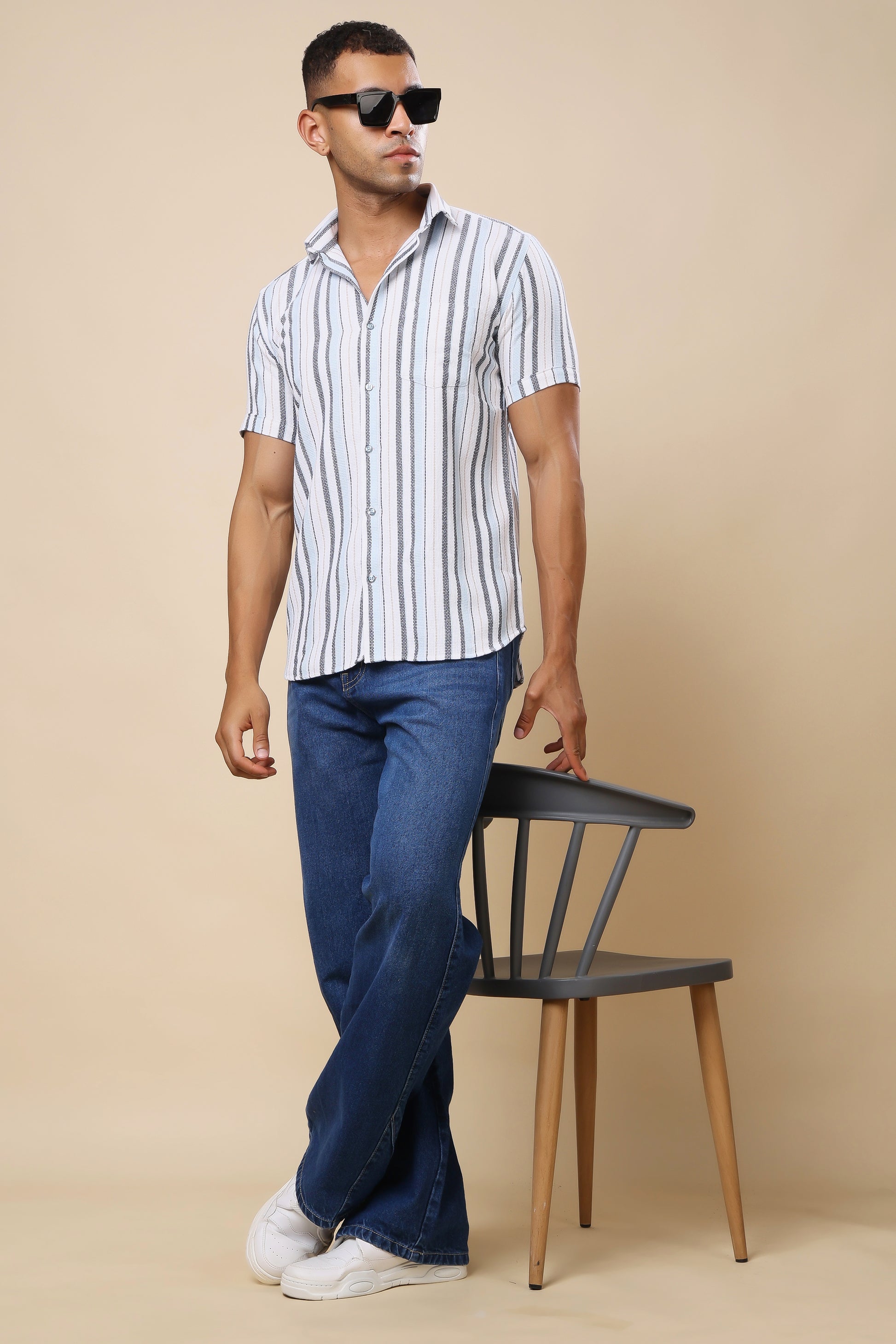 Featuring a button-down front, spread collar, and vertical stripe pattern, this shirt offers a modern yet versatile vibe that pairs easily with jeans, chinos, or shorts. Whether you’re heading out for a casual day, a weekend brunch, or an evening hangout, this shirt is your go-to choice.