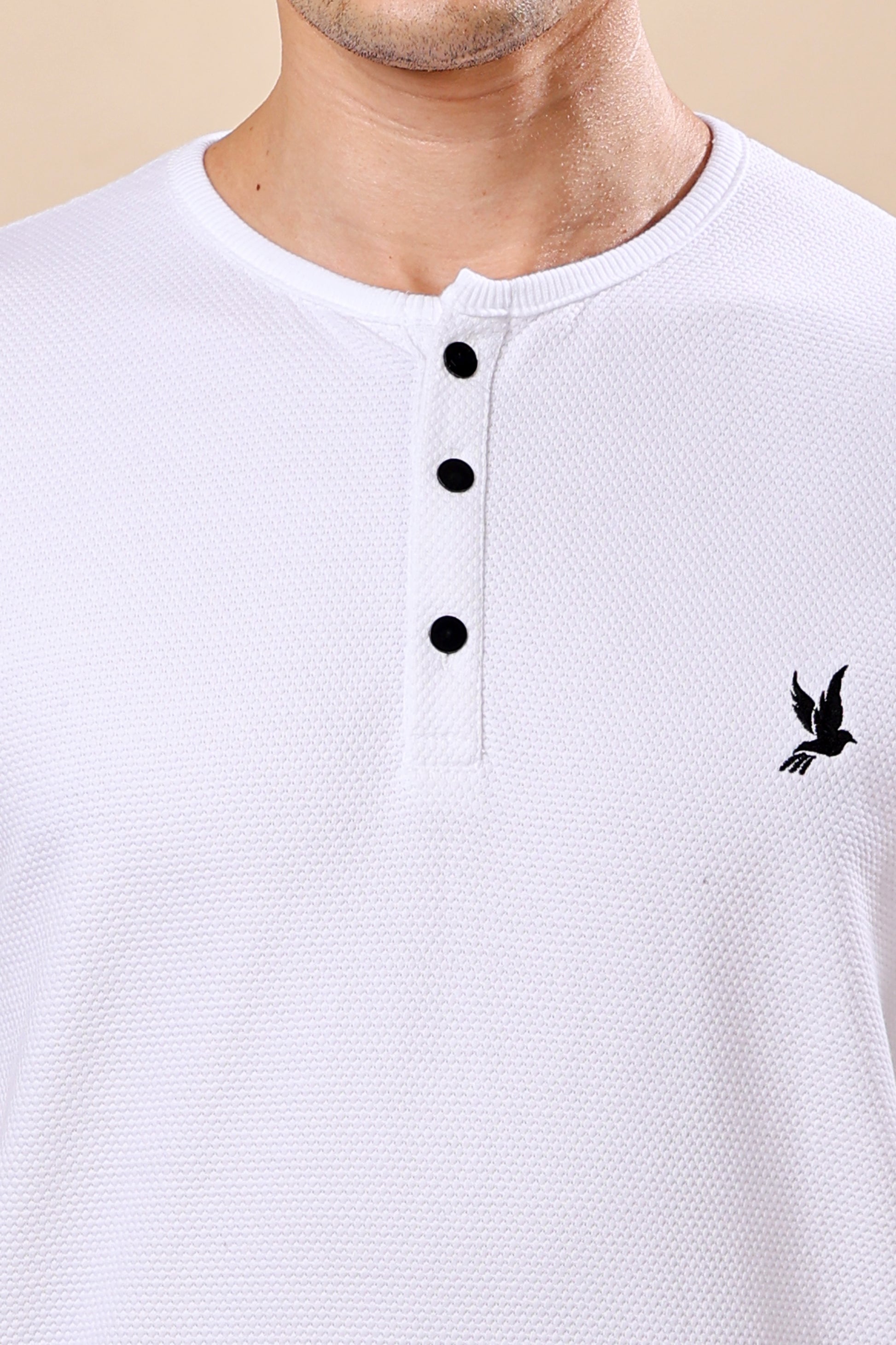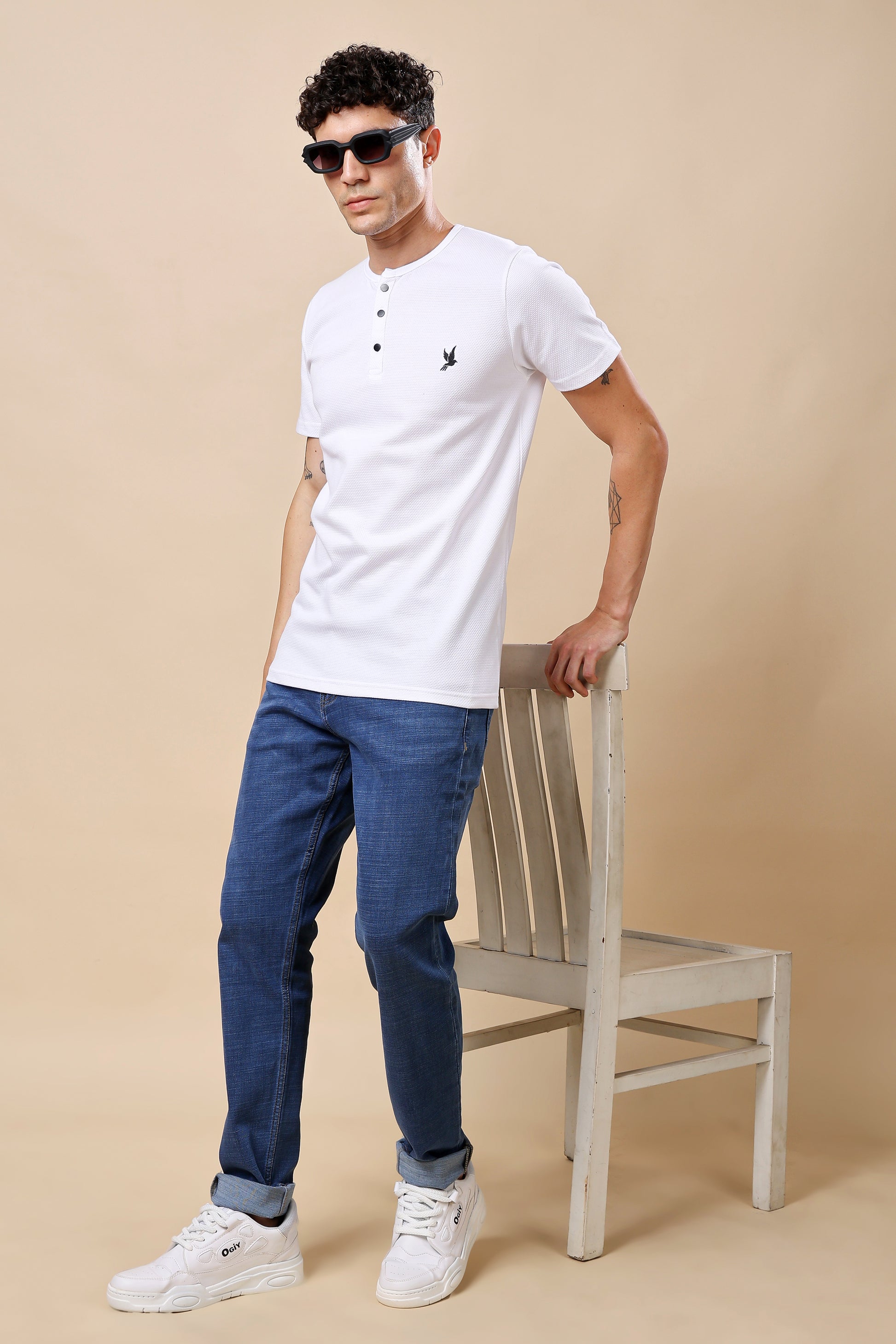 White Henley Neck T-Shirt – Minimalist Style, Maximum Comfort